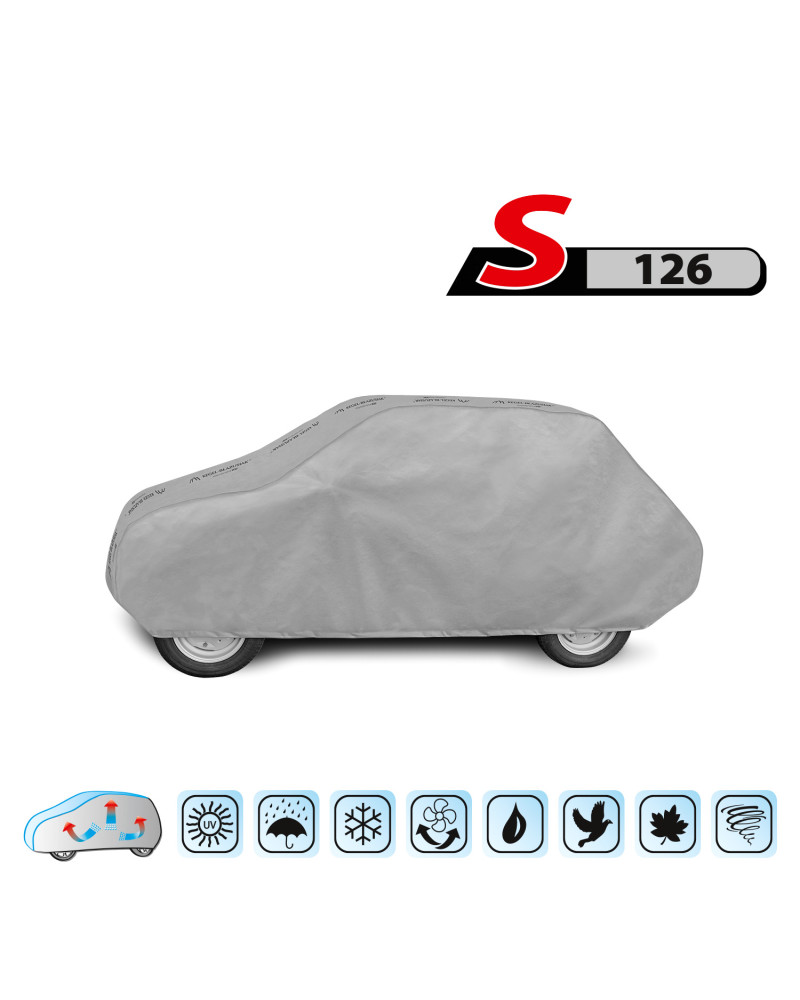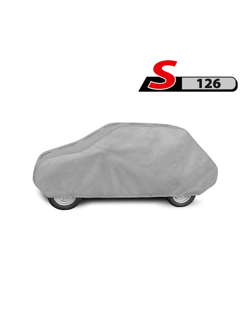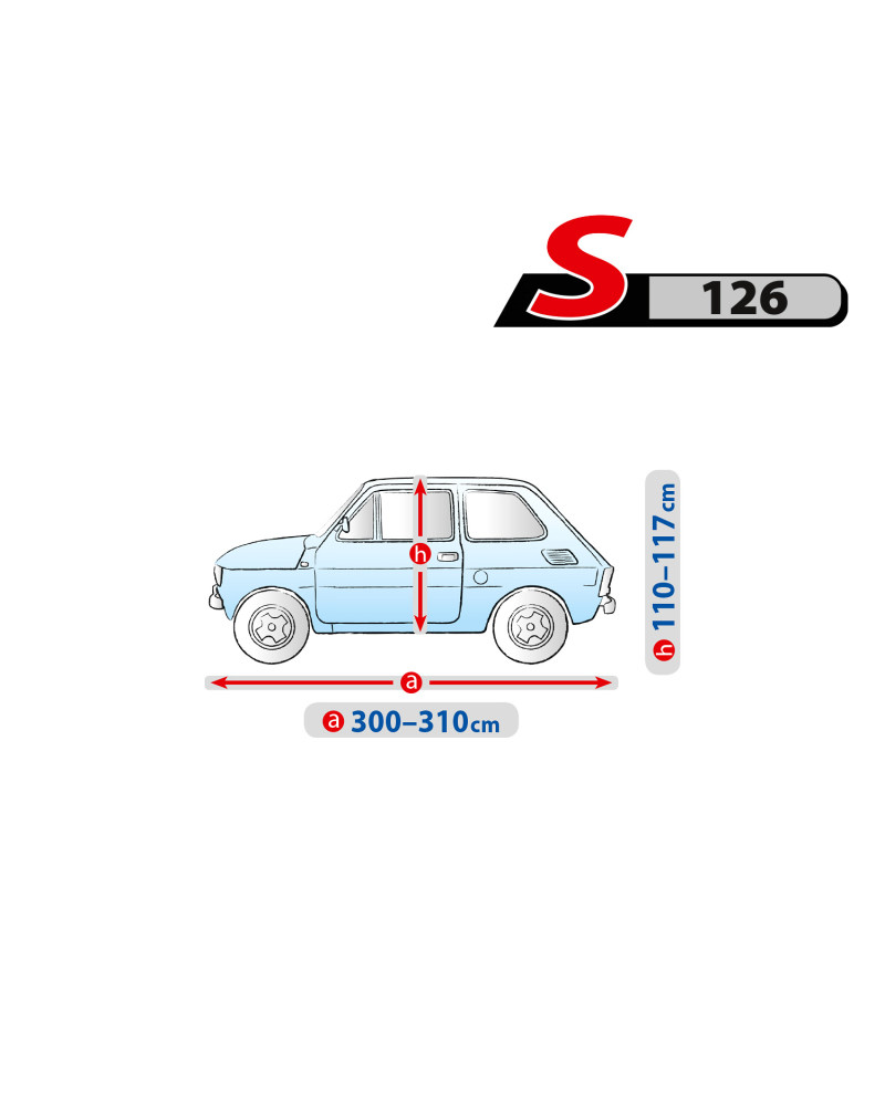 Textilný materiál, z ktorého je plachta vyrobená, sa prispôsobí menšiemu, ako aj väčšiemu autu podobného tvaru, s rozmermi neprekračujúcimi vyššie uvedený obvod.