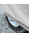 Horný pás materiálu tiahnuci sa cez masku, strechu a batožinový priestor je vyrobený z štvorvrstvovej, vodeodolnej, paropriepustnej MEMBRÁNY a boky (2 vrstvy) z neľahko premoknuteľného, vysoko paropriepustného materiálu SPUNBOND. Špeciálne vlastnosti materiálu a vhodná konštrukcia plachty zaisťujú správny obeh vzduch vo vnútri plachty. Každá známka vlhkosti, ktorá sa hromadí pod plachtou, sa rýchlo odparí, čo umožňuje zamedziť hrdzaveniu auta.