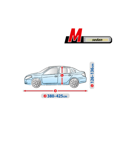 • Hodí sa pre vozidlá s rozmermi: dĺžka 380-425 cm, maximálny obvod 1146 cm