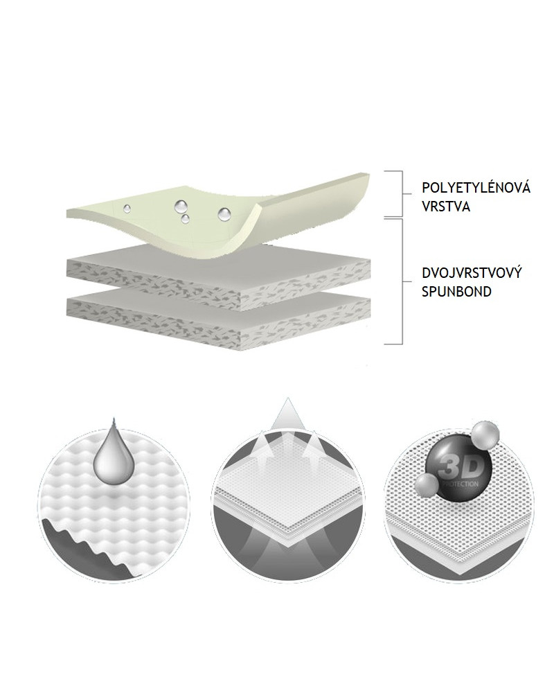 -vodeodolný a paropriepustný materiál odvádzajúci spod plachty vodnú paru;