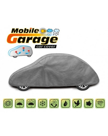 Vysoko kvalitné poťahy na auto MOBILE GARAGE- vodeodolné a paropriepustné. Vyrobené z nepremokavej, paropriepustnej membrány a neľahko premoknuteľných, vysoko paropriepustných materiálov si zachovávajú takmer úplnú tesnosť, a zároveň odvádzajú vlhkosť hromadiacu sa pod plachtou. Chránia celé auto spoločne s jeho dolnou časťou pred škodlivým vplyvom prostredia. Sú odolné voči pôsobeniu UV žiarenia. Pripevňujú sa pomocou sťahovača s lankom okolo celého vozidla, správne zaviazané zaisťujú bezpečnosť dokonca aj počas nárazového vetra. Vďaka širokému spektru tvarov a veľkostí sú plachty dobre prispôsobené rôznym autám. Poskytovaná záruka až 30 mesiacov vám dá istotu, že si kupujete výrobok najvyššej kvality.