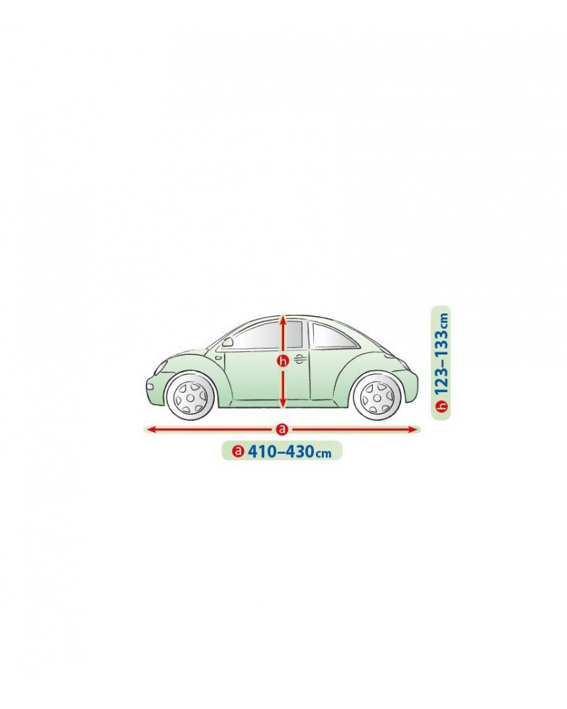 Textilný materiál, z ktorého je plachta vyrobená, sa prispôsobí menšiemu, ako aj väčšiemu autu podobného tvaru, s rozmermi neprekračujúcimi vyššie uvedený obvod.