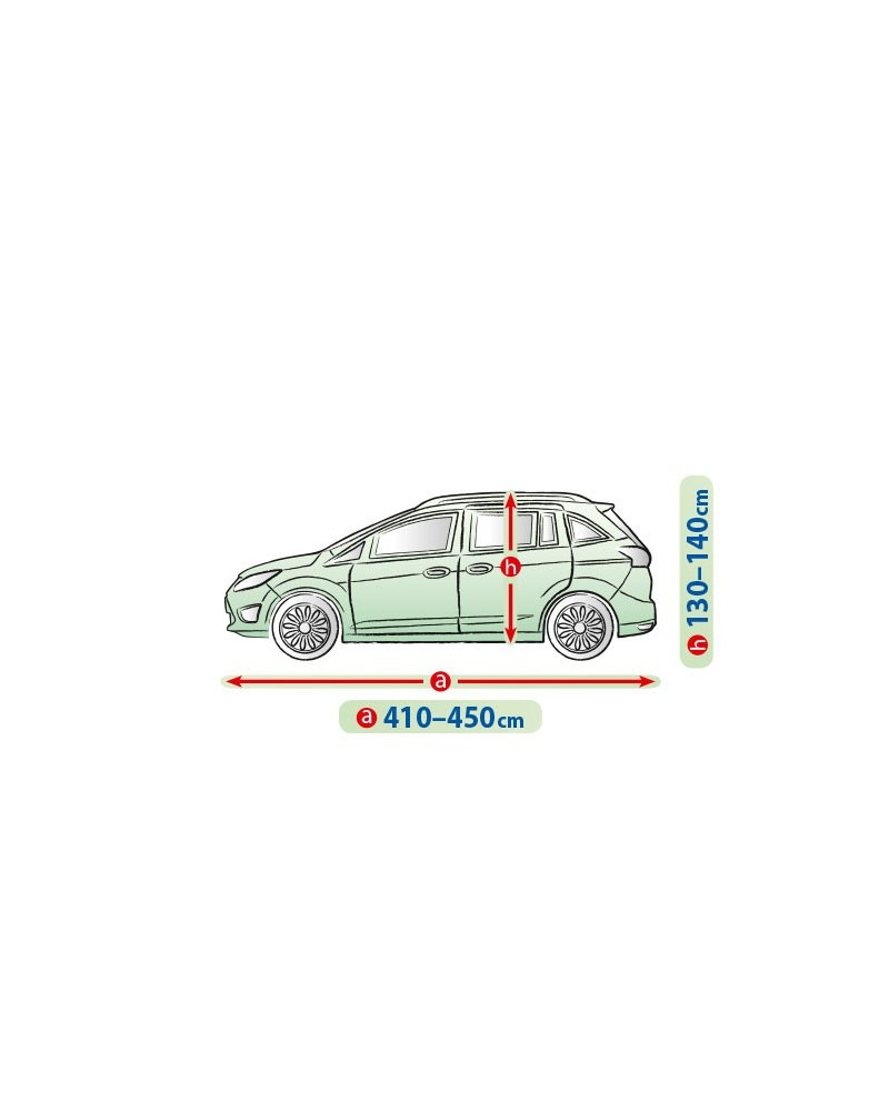 Textilný materiál, z ktorého je plachta vyrobená, sa prispôsobí menšiemu, ako aj väčšiemu autu podobného tvaru, s rozmermi neprekračujúcimi vyššie uvedený obvod.