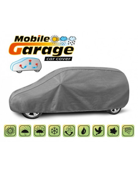 Vysoko kvalitné poťahy na auto MOBILE GARAGE- vodeodolné a paropriepustné. Vyrobené z nepremokavej, paropriepustnej membrány a neľahko premoknuteľných, vysoko paropriepustných materiálov si zachovávajú takmer úplnú tesnosť, a zároveň odvádzajú vlhkosť hromadiacu sa pod plachtou. Chránia celé auto spoločne s jeho dolnou časťou pred škodlivým vplyvom prostredia. Sú odolné voči pôsobeniu UV žiarenia. Pripevňujú sa pomocou sťahovača s lankom okolo celého vozidla, správne zaviazané zaisťujú bezpečnosť dokonca aj počas nárazového vetra. Vďaka širokému spektru tvarov a veľkostí sú plachty dobre prispôsobené rôznym autám. Poskytovaná záruka až 30 mesiacov vám dá istotu, že si kupujete výrobok najvyššej kvality.