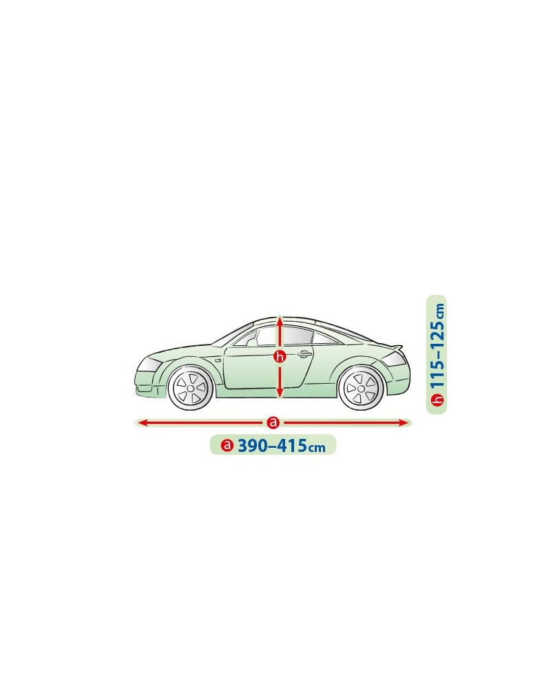 Textilný materiál, z ktorého je plachta vyrobená, sa prispôsobí menšiemu, ako aj väčšiemu autu podobného tvaru, s rozmermi neprekračujúcimi vyššie uvedený obvod.