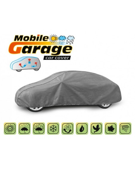 Vysoko kvalitné poťahy na auto MOBILE GARAGE- vodeodolné a paropriepustné. Vyrobené z nepremokavej, paropriepustnej membrány a neľahko premoknuteľných, vysoko paropriepustných materiálov si zachovávajú takmer úplnú tesnosť, a zároveň odvádzajú vlhkosť hromadiacu sa pod plachtou. Chránia celé auto spoločne s jeho dolnou časťou pred škodlivým vplyvom prostredia. Sú odolné voči pôsobeniu UV žiarenia. Pripevňujú sa pomocou sťahovača s lankom okolo celého vozidla, správne zaviazané zaisťujú bezpečnosť dokonca aj počas nárazového vetra. Vďaka širokému spektru tvarov a veľkostí sú plachty dobre prispôsobené rôznym autám. Poskytovaná záruka až 30 mesiacov vám dá istotu, že si kupujete výrobok najvyššej kvality.