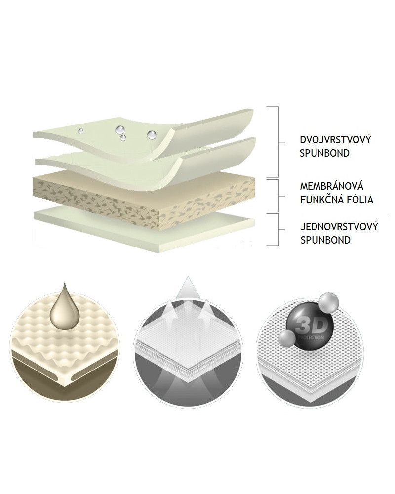 -vodeodolný a paropriepustný materiál odvádzajúci spod plachty vodnú paru;