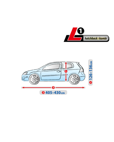 • Hodí sa pre vozidlá s rozmermi: dĺžka 405-430 cm, maximálny obvod 1156 cm
