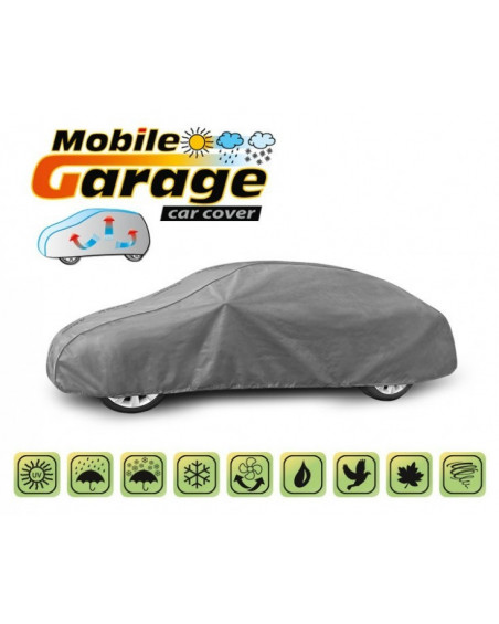 Vysoko kvalitné poťahy na auto MOBILE GARAGE- vodeodolné a paropriepustné. Vyrobené z nepremokavej, paropriepustnej membrány a neľahko premoknuteľných, vysoko paropriepustných materiálov si zachovávajú takmer úplnú tesnosť, a zároveň odvádzajú vlhkosť hromadiacu sa pod plachtou. Chránia celé auto spoločne s jeho dolnou časťou pred škodlivým vplyvom prostredia. Sú odolné voči pôsobeniu UV žiarenia. Pripevňujú sa pomocou sťahovača s lankom okolo celého vozidla, správne zaviazané zaisťujú bezpečnosť dokonca aj počas nárazového vetra. Vďaka širokému spektru tvarov a veľkostí sú plachty dobre prispôsobené rôznym autám. Poskytovaná záruka až 30 mesiacov vám dá istotu, že si kupujete výrobok najvyššej kvality.