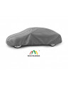 Je vyrobená z nesmierne stáleho a pevného materiálu vysokej kvality, ktorý sa vyznačuje mnohými výnimočnými vlastnosťami. Horný pás materiálu tiahnuci sa cez masku, strechu a batožinový priestor je vyrobený z štvorvrstvovej, vodeodolnej, paropriepustnej MEMBRÁNY a boky (2 vrstvy) z neľahko premoknuteľného, vysoko paropriepustného materiálu SPUNBOND. Špeciálne vlastnosti materiálu a vhodná konštrukcia plachty zaisťujú správny obeh vzduch vo vnútri plachty. Každá známka vlhkosti, ktorá sa hromadí pod plachtou, sa rýchlo odparí, čo umožňuje zamedziť hrdzaveniu auta. Z vnútornej strany plachty je materiál úplne hladký, bezpečný pre vozidlo, pretože nespôsobuje jeho poškrabanie ani odrenie laku a to dokonca ani pri silných nárazoch vetra. Plachta má popolavú farbu, ktorá je nesmierne praktická a zároveň skvele vyzerá. Stredom plachty prebieha nápis s názvom a logom firmy a s názvom materiálu, z ktorého bola vyrobená - to vám poskytuje záruku originality a vysokej kvality produktu. Produkt sa veľmi ľahko a rýchlo inštaluje. Plachta zakrýva celý povrch auta spolu s dolnými časťami, ľahko presahuje cez spodnú časť a vďaka sťahovaču s lankom okolo celého vozidla sa pevne prichytí k autu, čo zabraňuje posúvaniu plachty. Iba správne zaviazanie zaručuje odolnosť viazania. Po zložení plachta nezaberie príliš miesta, vďaka tomu ju môžete voziť so sebou.