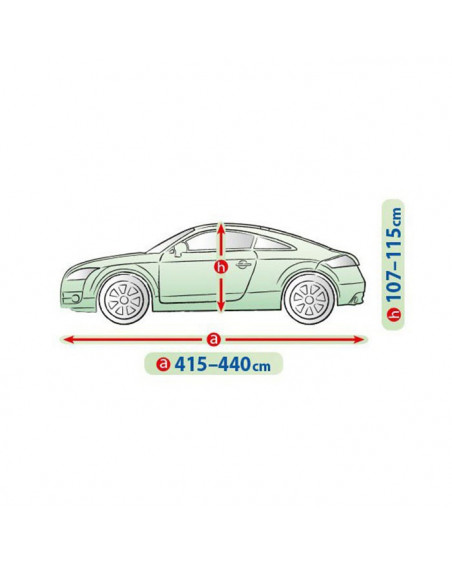 Textilný materiál, z ktorého je plachta vyrobená, sa prispôsobí menšiemu, ako aj väčšiemu autu podobného tvaru, s rozmermi neprekračujúcimi vyššie uvedený obvod.