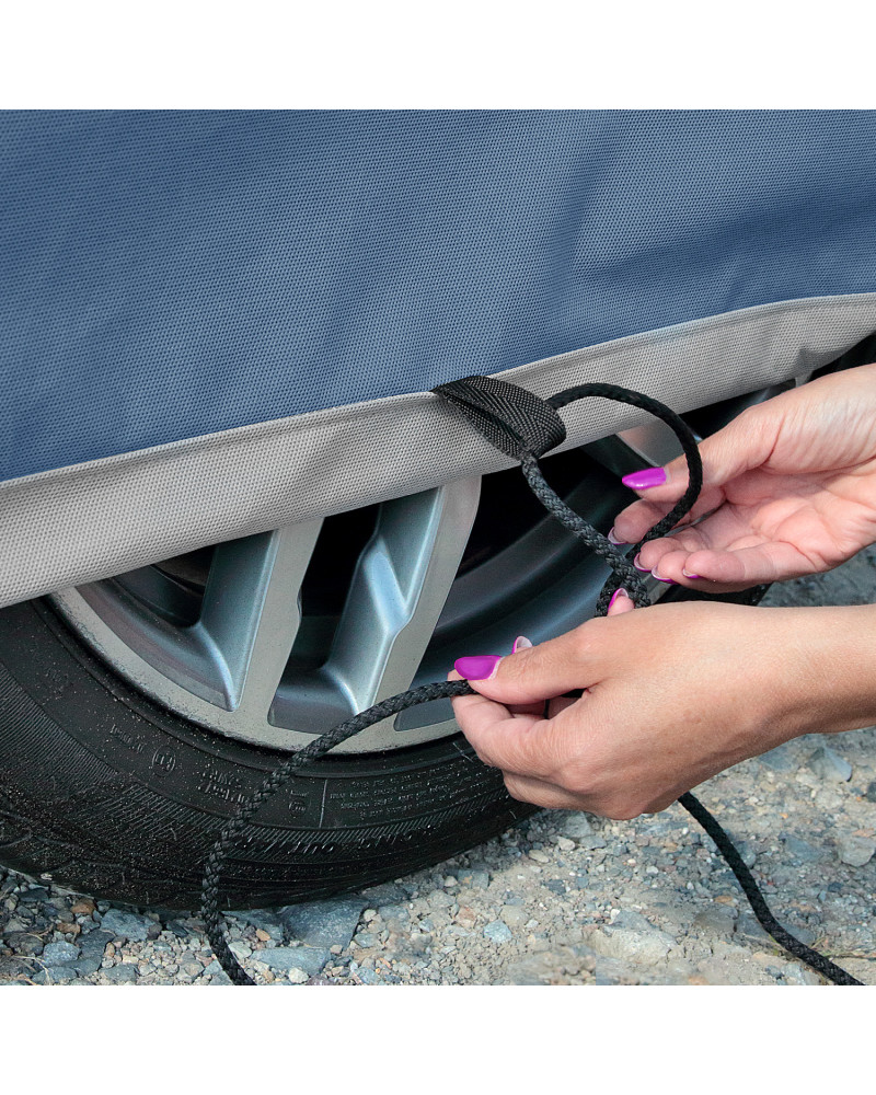 Zaviažte lanko podľa pokynov a budete mať istotu, že je plachta pevne a silne pripevnená a že je tak vaše auto úplne v bezpečí.