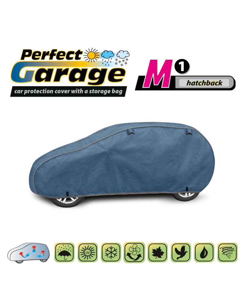Plachta PERFECT GARAGE je dobre prispôsobená, pevne pripevnená s pomocou tradičného sťahovacieho lemu s lankom okolo celého auta, vyrobená zo silného a z vnútornej strany hladkého materiálu, vďaka tomu môže byť bezpečne používaná dokonca aj počas nárazového vetra. Ľahko sa nasadzuje a sťahuje. Po zložení nezaberie plachta príliš miesto, preto ju môžete vždy voziť so sebou. Poťah Perfect Garage vyrábame v elegantnej a estetickej tmavomodrej farbe, aby sme ho odlíšili od iných plachiet. Napriek tomu, že je tmavomodrá farba tmavá, má poťah PERFECT GARAGE ešte väčšiu odolnosť voči slnečnému žiareniu. Hornou časťou plachty prebieha nápis Kegel-Błażusiak KB Textil, aby potenciálni zákazníci, ktorí uvidia našu plachtu na zaparkovanom aute, vedeli, ako značku plachty hľadať.