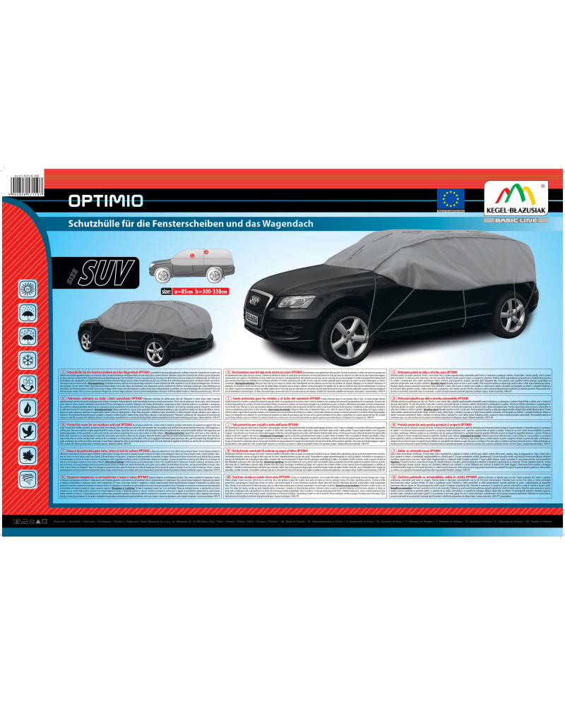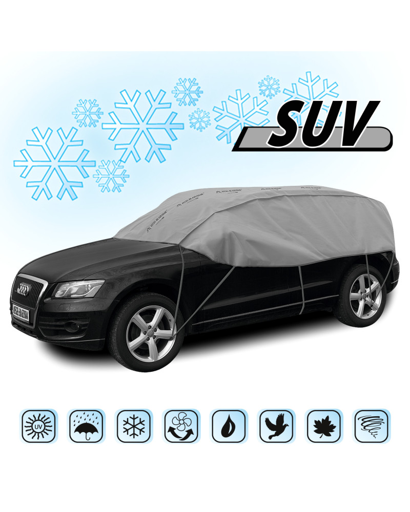 Ochranné poloplachty WINTER OPTIMIO ochránia v zime strechu, sklá a zrkadlá zaparkovaného automobilu pred usadzujúcou sa námrazou a snehom. Kryje kľučky a zámky automobilu a zabraňuje ich zamrznutiu. Neprimŕza k automobilu. Chráni tiež pred šťavami zo stromov, vtačími exkrementmi a usadzujúcim sa prachom a dokonca aj pred UV žiarením. Preto ju môžeme používať v každom ročnom období. Ochranné plachty WINTER OPTIMIO sú lacnejšie, zimnejšie verzie našich osvedčených poloplachiet Solux.