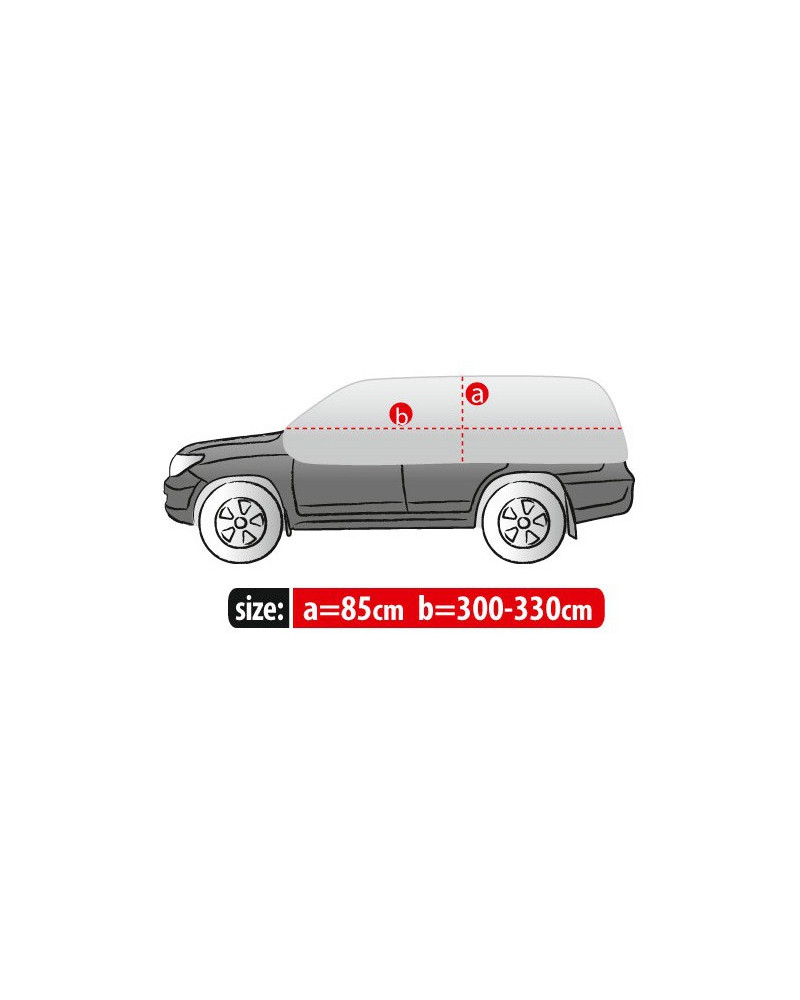 -zakrýva celé vozidlo, ľahko presahuje pod jeho spodnú časť;
