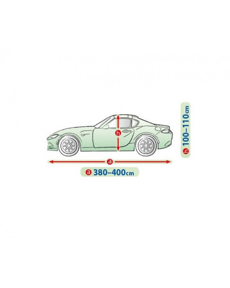 Textilný materiál, z ktorého je plachta vyrobená, sa prispôsobí menšiemu, ako aj väčšiemu autu podobného tvaru, s rozmermi neprekračujúcimi vyššie uvedený obvod.