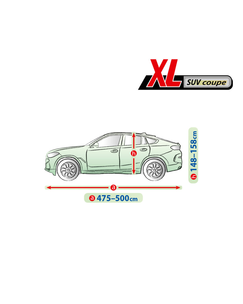 Textilný materiál, z ktorého je plachta vyrobená, sa prispôsobí menšiemu, ako aj väčšiemu autu podobného tvaru, s rozmermi neprekračujúcimi vyššie uvedený obvod.
