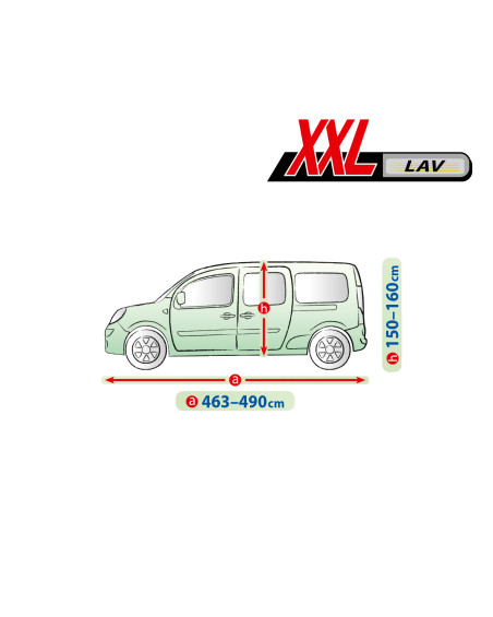 Textilný materiál, z ktorého je plachta vyrobená, sa prispôsobí menšiemu, ako aj väčšiemu autu podobného tvaru, s rozmermi neprekračujúcimi vyššie uvedený obvod.