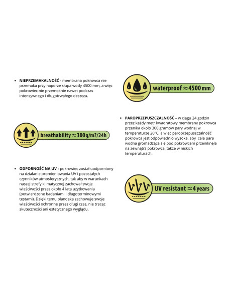 • kryt je nepremokavý (aj pri silnom daždi) a zároveň paropriepustný, odvádza vlhkosť spod krytu