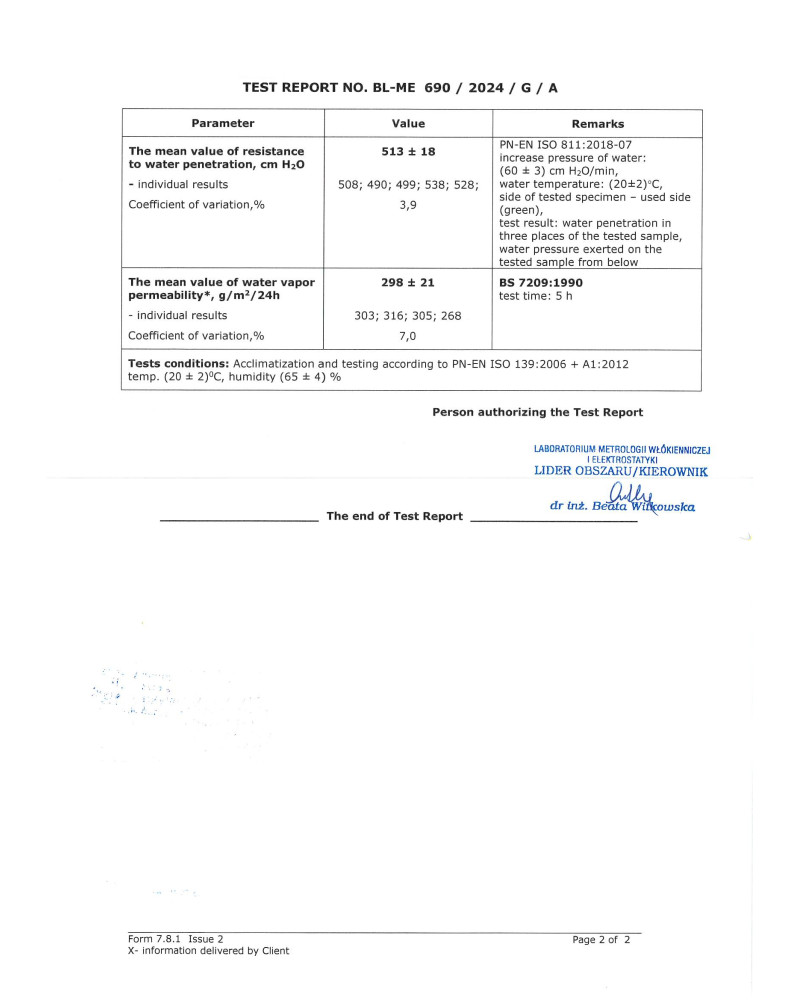 • vyrobený z vysoko paropriepustnej membrány
