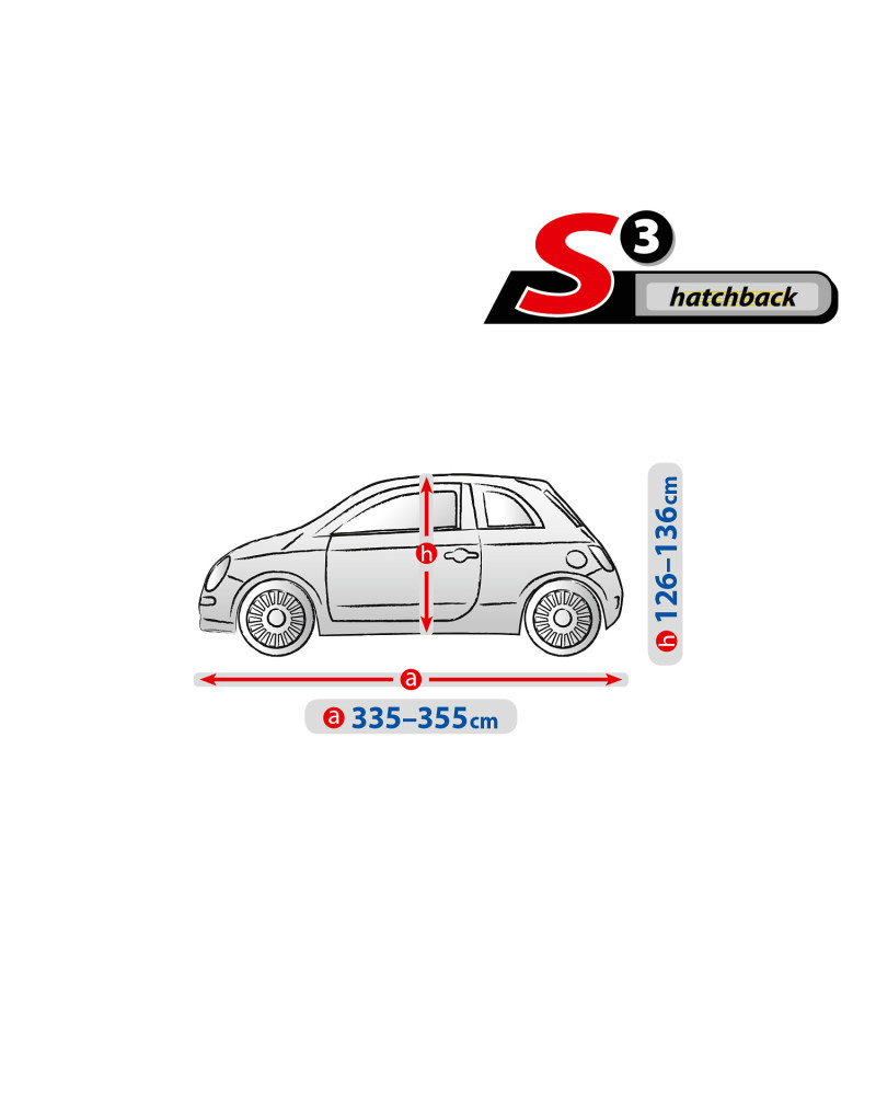 Textilný materiál, z ktorého je plachta vyrobená, sa prispôsobí menšiemu, ako aj väčšiemu autu podobného tvaru, s rozmermi neprekračujúcimi vyššie uvedený obvod.