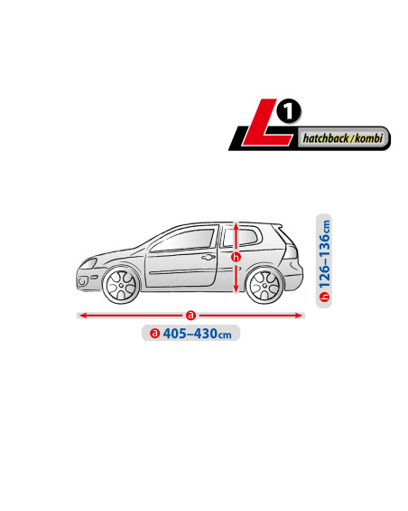 • Hodí sa pre vozidlá s rozmermi: dĺžka 405-430 cm, maximálny obvod 1156 cm