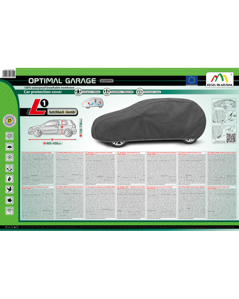 Membránová, vodotesná a zároveň paropriepustná plachta na auto OPTIMAL GARAGE. Svoje vodotesné vlastnosti si udržiava aj pri silnom daždi a zároveň je paropriepustná, čím odvádza vlhkosť spod plachty. Plachta je odolná voči nepriaznivým vplyvom počasia a je vyrobená z vysoko paropriepustnej membrány. Chráni pred dažďom, snehom, mrazom a slnečnými lúčmi (škodlivým UV žiarením), ako aj nečistotami, ako je prach, vtáčí trus a miazga stromov.