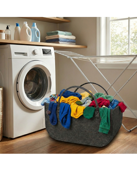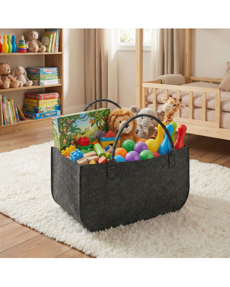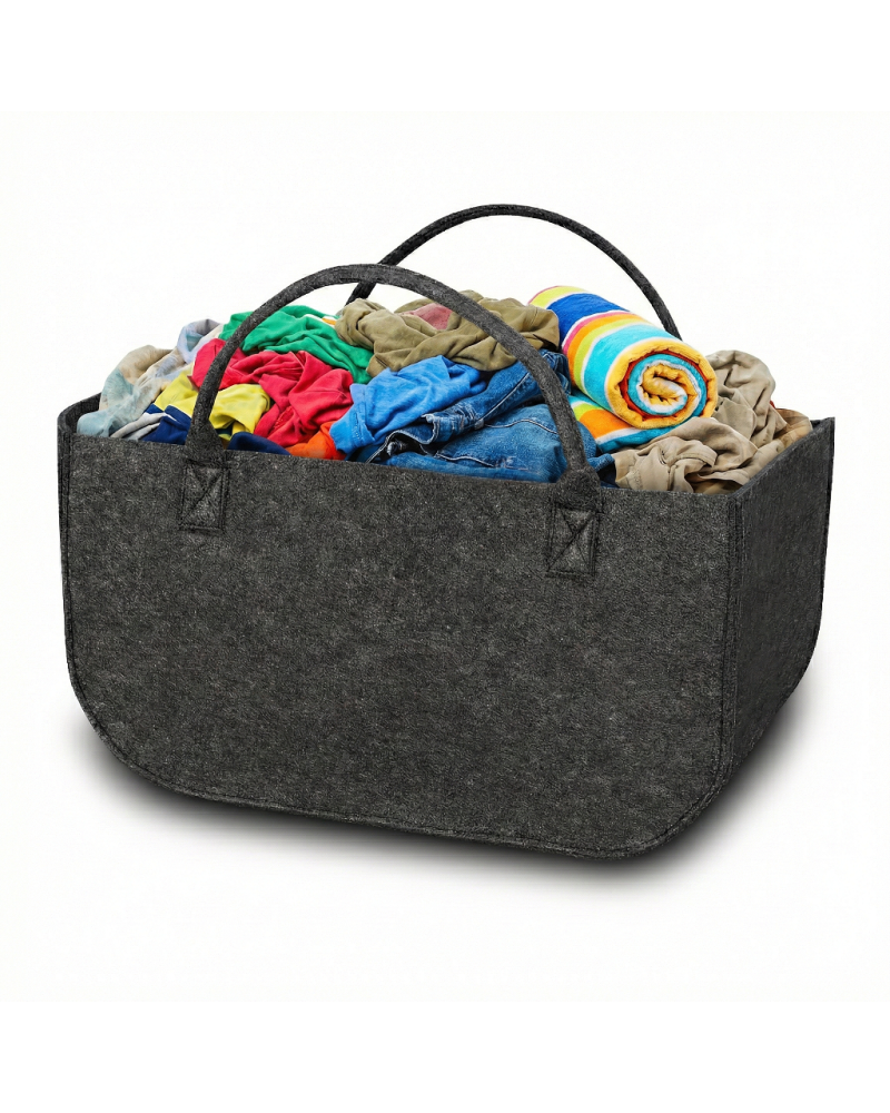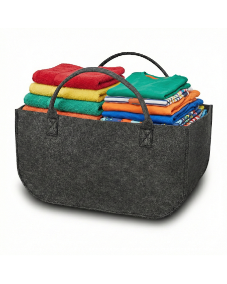 Veľká taška na široké spektrum použitia, napr. na domáce použitie na skladovanie a prenášanie dreva na kúrenie, detských hračiek, hračiek pre psov a mačky, špinavého prádla a na mnoho ďalších účelov. Taška je ideálna aj na prepravu nákupu autom a prenášanie nákupu z auta do domu. Taška je vyrobená z veľmi pevnej plsti s hrúbkou 5 mm, ktorá je zošitá veľmi silnými niťami, vďaka čomu je taška veľmi pevná a vždy „drží tvar“, a uši prišité na tašku sú hrubé, pevné a pohodlné. Taška unesie hmotnosť až 30 kg.