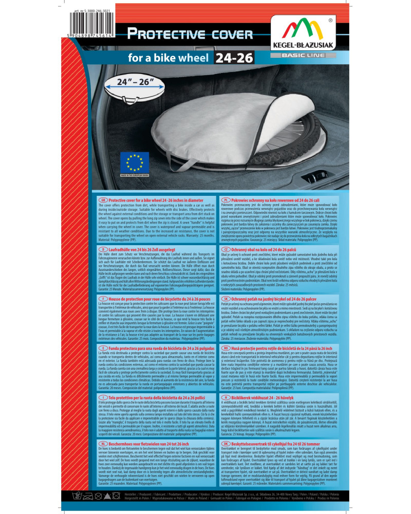 Poťah je určený na ochranu pred ušpinením, ktoré môže spôsobiť jazdný bicykel počas prevážania vo vnútri vozidiel a na uchovávanie bicykla vo vnútri a mimo miestností. Sedí aj na bicykel s kotúčovou brzdou. Dobre chráni bicykel pred vonkajšími podmienkami a pred znečistením, ktoré môže bicykel spôsobiť. Poťah sa rozopína rozzipsovaním dlhého zipsu všitého do boku poťahu, vďaka čomu sa poťah veľmi ľahko skladá a po zapnutí zipsu je nepriechodný pre nečistoty. Vďaka všitému „uchu“ je prenášanie bicykla v poťahu veľmi ľahké. Poťah je veľmi ťažko premoknuteľný a paropriepustný a je odolný voči všetkým atmosférickým podmienkam. S ohľadom na zvýšenie odporu vzduchu sa poťah nehodí na prevážanie bicykla na otvorených vonkajších batožinových priestoroch vozidla. Záruka: 25 mesiacov.