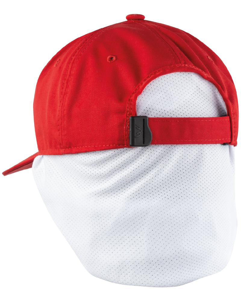Vzadu na čapici sieťka na vlasy s prispôsobujúcou sa gumou.