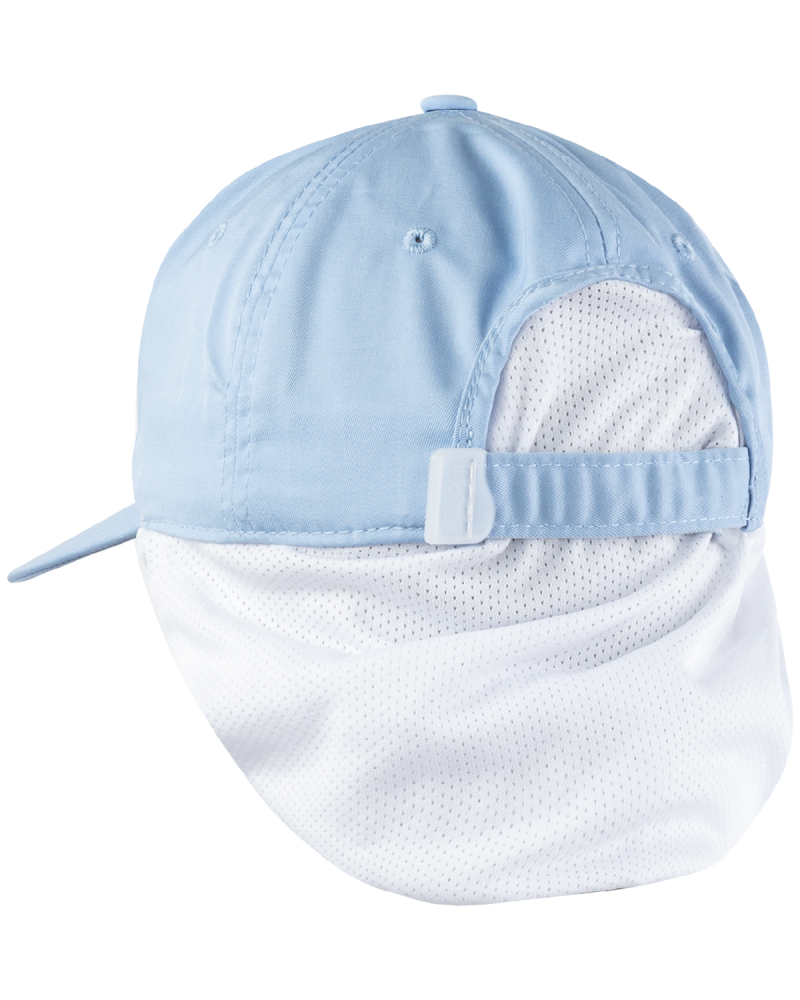 Vzadu na čapici sieťka na vlasy s prispôsobujúcou sa gumou.