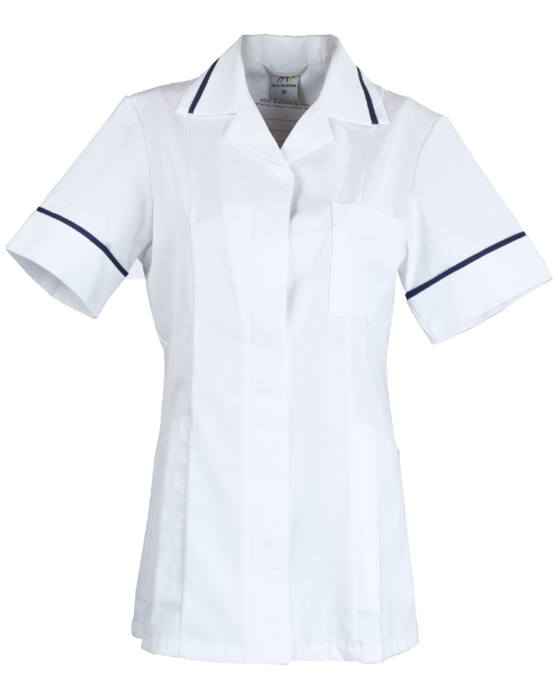 Priekrčník zakončený golierom s kontrastnou lemovkou.