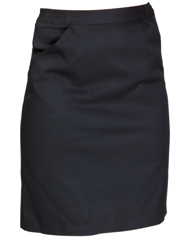 Zapínaná na gombík, na bokoch v páse prispôsobujúca sa guma.