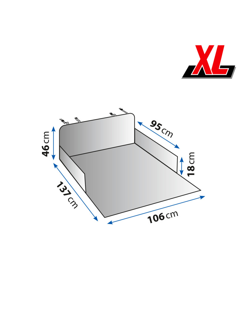 Ochranný poťah na prevoz psa v batožinovom priestore automobilu typu kombi, SUV alebo hatchback. Psovi prevážanému v batožinovom priestore zaisťuje pohodlný priestor vďaka mäkkej, protišmykovej základni a bočným vypchávkam z materiálov bez zápachu a šetrných ku koži. Efektívne chráni batožinový priestor auta pred všetkými nečistotami, ktoré môžu vzniknúť počas prevážania psa, ako je blato, srsť, voda alebo dokonca zvratky alebo stolica. Vysunutá zadná časť poťahu chráni zadný nárazník auta pred poškriabaním počas naskakovania psa do batožinového priestoru. Poťah sa počas naskakovania a prevážania psa neposúva. Vysoké bočné strany poťahu tvoria v batožinovom priestore „žľab“ chrániaci pred vysypaním sa nečistôt z poťahu dovnútra batožinového priestoru. Nepremokavé dno poťahu je pre pohodlie a bezpečnosť psa zospodu potiahnuté hrubou penou (hubkou). Poťah je kompletne zhotovený z bezpečných materiálov vyrobených v Európskej únii.
