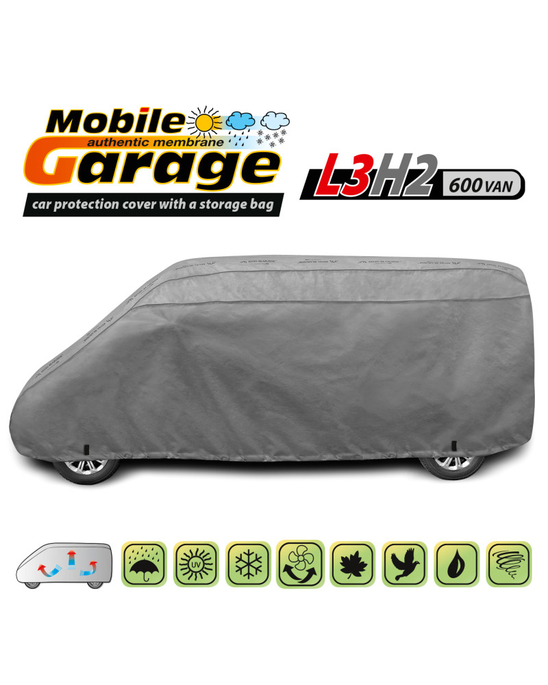 Vysoko kvalitné poťahy na auto MOBILE GARAGE- vodeodolné a paropriepustné. Vyrobené z nepremokavej, paropriepustnej membrány a neľahko premoknuteľných, vysoko paropriepustných materiálov si zachovávajú takmer úplnú tesnosť, a zároveň odvádzajú vlhkosť hromadiacu sa pod plachtou. Chránia celé auto spoločne s jeho dolnou časťou pred škodlivým vplyvom prostredia. Sú odolné voči pôsobeniu UV žiarenia. Pripevňujú sa pomocou sťahovača s lankom okolo celého vozidla, správne zaviazané zaisťujú bezpečnosť dokonca aj počas nárazového vetra. Vďaka širokému spektru tvarov a veľkostí sú plachty dobre prispôsobené rôznym autám. Poskytovaná záruka až 30 mesiacov vám dá istotu, že si kupujete výrobok najvyššej kvality.