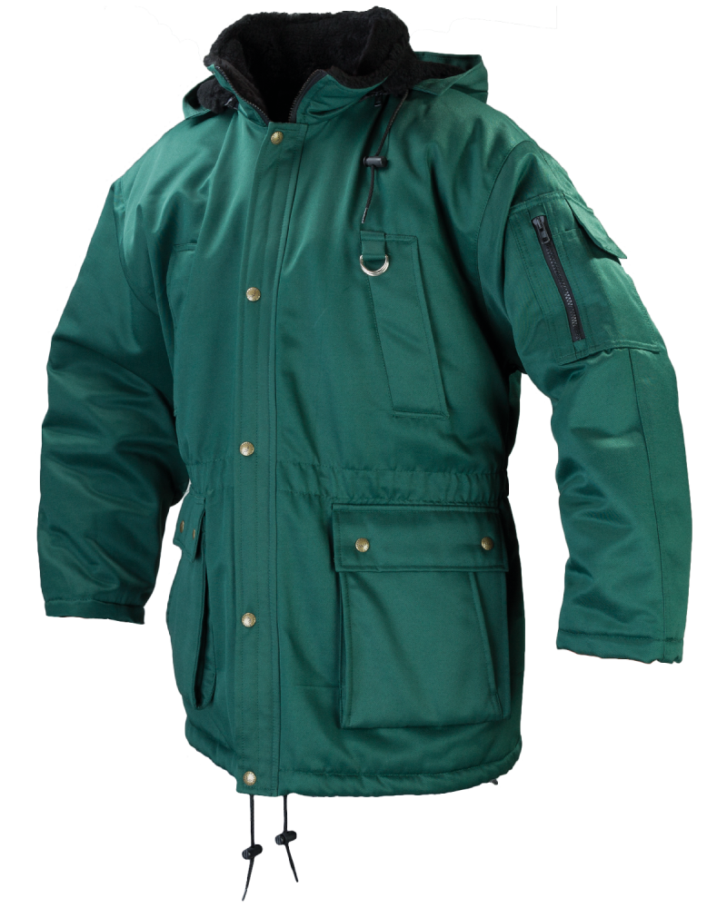 Rukávy zakončené lemom, vo vnútri všitý ochranný pružný lem, na ľavom rukáve vrecko zapínané na zips, s priehradkou na pero a vreckom na telefón.