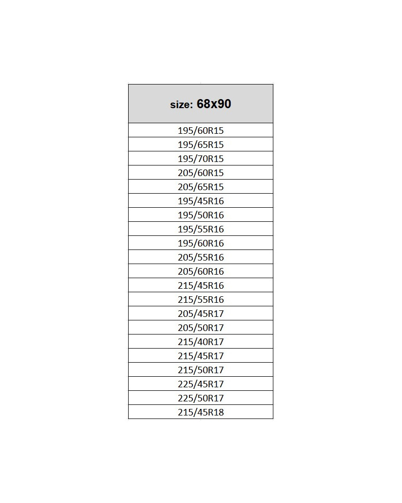195/60R15, 195/65R15, 195/70R15, 205/60R15, 205/65R15, 195/45R16, 195/50R16, 195/55R16, 195/60R16, 205/55R16, 205/60R16, 215/45R16, 215/55R16, 205/45R17, 205/50R17, 215/40R17, 215/45R17, 215/50R17, 225/45R17, 225/50R17, 215/45R18.