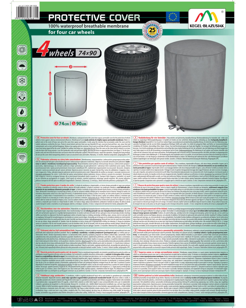 Membránový, vodotesný a zároveň paropriepustný obal na ochranu kolies alebo pneumatík vozidla pred nepriaznivými vplyvmi prostredia. Obal odolný voči vplyvom počasia je vyrobený výlučne z vysoko paropriepustnej membrány. Je vodoodpudivý aj pri silnom daždi a zároveň paropriepustný, odvádza vlhkosť hromadiacu sa pod obalom a prchavé látky vylučované pneumatikami na vonkajšiu stranu obalu. Chráni uložené kolesá a pneumatiky pred slnečnými lúčmi ( škodlivým UV žiarením), nadmerným teplom a pred dažďom, snehom, mrazom a nečistotami, ako je prach a vtáčí trus. Znižuje starnutie pneumatík a koróziu ráfikov. Jednoduché nasadzovanie a snímanie pomocou silného lanového sťahováka, ktorý zabraňuje strhnutiu krytu vetrom. Vhodný na vonkajšie aj vnútorné použitie.