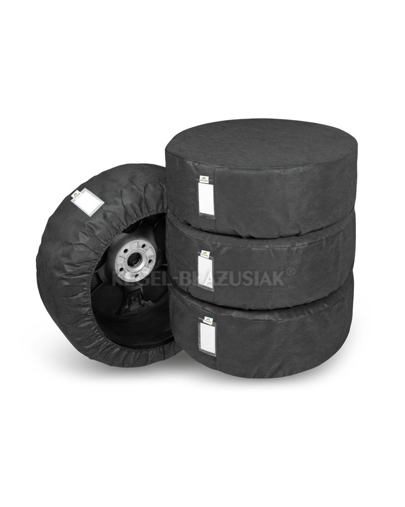Sada 4 vysoko kvalitných poťahov SEASON – určených na sezónne uskladnenie pneumatík a automobilových kolies, zvlášť tých s hliníkovými diskami (kryjú pneumatiky spolu s diskami). Sú vyrobené z neľahko premokavého, paropriepustného materiálu, ktorý zaisťuje správnu cirkuláciu vzduchu vo vnútri poťahov a zabraňuje vzniku korózie. V garáži vyzerajú veľmi dobre. Neusadzuje sa na nich prach, počas dlhšej prestávky v ich používaní. Po stiahnutí poťahu budú kolesá/pneumatiky ako nové - zostanú v takom stavu, v akom sme ich zanechali. Poťahy veľmi dobre chránia pred znečistením oblečenia počas prenášania kolies. Poťahy majú všité vrecko na etiketu popisujúcu pneumatiky/kolesa. Veľmi ľahko sa nasadzujú a sťahujú.