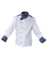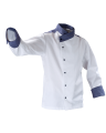 Výstrih zakončený stojačikom z kontrastnej látky.