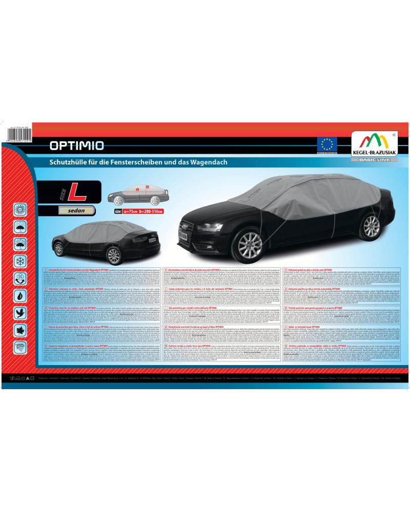 Automobil prikrytý poloplachtou WINTER OPTIMAL sa tak rýchlo neochladí, pokiaľ stojí na mraze, v lete zostane auto prikryté poloplachtou WINTER OPTIMIO vo vnútri chladné tak, akoby bolo zaparkované v tieni. Plachty majú popolavú farbu, ktorá je nesmierne praktická a zároveň skvele vyzerá. Výrobok je prispôsobený tak pre nárazové, ako aj na dlhodobé používanie. Vznikol s ohľadom na majiteľov áut, ktorí nemajú možnosť garážovania a nechávajú svoje auto dlhšie pod šírym nebom. Výrobok sa veľmi ľahko a rýchlo inštaluje. Stačí pružné slučky poťahu zakončené bezpečnými hákmi zachytiť o disky, dolnú hranu v strednej časti auta a o dolnú hranu zadného nárazníku (montážne pokyny nižšie). Poťah sa silne drží auta a nepohybuje sa dokonca ani počas úporného vetra. Po zložení nezaberie plachta príliš miesto, preto ju môžete vždy voziť so sebou.