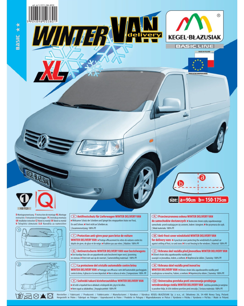 Clona proti námraze WINTER Delivery Van je vyrobená v čiernej, univerzálnej farbe. Táto farba sa skvele hodí ku všetkým druhom a farbám áut. Vyzerá elegantne, je príjemná pre oko a vyvoláva vysoké estetické dojmy. Čierna farba je veľmi praktická, zabraňuje vzniku nečistôt a akékoľvek nečistoty na nej budú zle viditeľné. Produkt sa ľahko čistí - clonu možno prať na 40 stupňov.