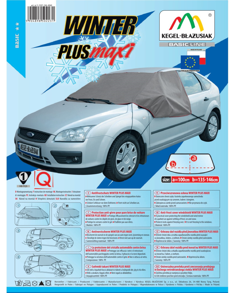 Clona proti námraze WINTER efektívne chráni sklá zaparkovaného auta pred usadzujúcou sa námrazou, ľadom a snehom. Ochráni vaše auto a navyše vám zaistí komfort a pohodlie. Umožní ušetriť čas a energiu stratené každý deň na zoškrabanie námrazy zo skla auta. Vyrobená z vysoko kvalitného materiálu - netkanej textílie SPUNBOND, s vysokou odolnosťou voči primŕzaniu. Profesionálne vyrobená zo silného, ale zároveň pre auto jemného materiálu - nespôsobuje poškodenie a poškrabanie skla. Výrobok sa veľmi ľahko inštaluje (inštalácia prebieha pribuchnutím prednými dverami) a čistí. Nízke teploty vás už nebudú strašiť!