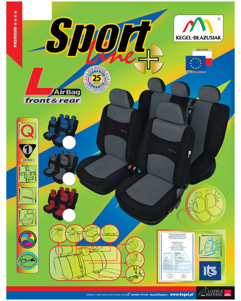 Elegantný a športový vzhľad sú dve základné vlastnosti odlišujúce univerzálne, prispôsobené poťahy radu SPORT LINE. Vyrábajú sa v troch farebných variantoch - modrej, čiernej a grafitovej - v intenzívnych aj keď tónovaných odtieňoch farieb. Poťahy sú určené pre konkrétne modely áut, prispôsobia sa sedadlám a priliehajú k nim - dobrú priľnavosť zaisťuje podlaminovanie polyuretánovou penou na vnútornej strane. Poťahy majú špeciálne, bezpečné švy pre airbagy, vďaka tomu sú prispôsobené pre automobily tak s bočnými airbagmi v sedadlách, ako aj so štandardnými sedadlami. Poskytovaná záruka až 25 mesiacov vám dá istotu, že si kupujete výrobok najvyššej kvality.