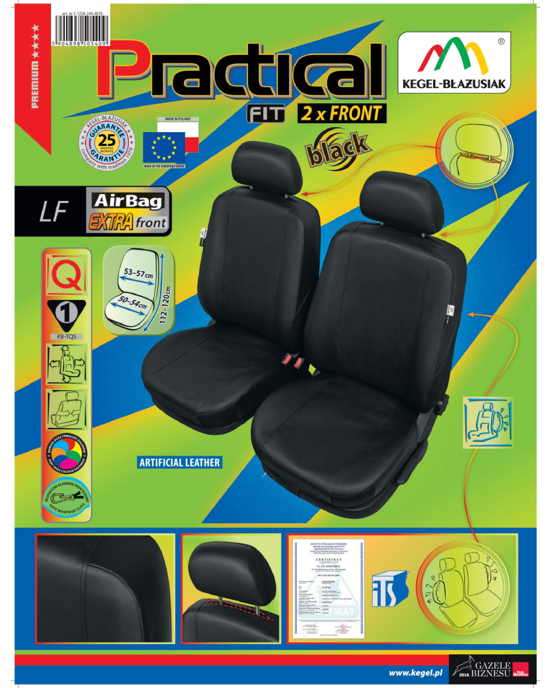 Prispôsobené poťahy PRACTICAL- zhotovené zo silnej, stálej a nepremokavej ekokože novej generácie, dodajú interiéru vášho auta eleganciu a úroveň a zároveň ochránia samotné čalúnenie vášho automobilu pred znečistením a poškodením. Poťahy určené pre konkrétne typy automobilov sa vďaka vhodnej, priestorovej konštrukcii dobre prispôsobia sedadlám. Zadná časť poťahov je navyše podlaminovaná PUR penu, ktorá sa vyznačuje vysokou priľnavosťou. Vďaka takejto konštrukcii poťahy stabilne priliehajú k sedadlám a dobre s nimi ladia. Autopoťahy PRACTICAL veľmi dobre chránia originálne čalúnenie auta pred predratím a zničením a vkusný, moderný štýl vyvoláva pozitívne estetické vnemy. Nepremokavý, nešpiniaci sa a nesmierne odolný materiál zaisťuje praktické používanie. Všetky znečistenia poťahu sa ľahko odstránia - stačí ich otrieť vlhkou handričkou. Ponuka je určená pre majiteľov osobných áut, ktorí sa chcú postarať o interiér svojich vozidiel, osviežiť ho alebo zatraktívniť. Klasická farebnosť sa ideálne zladí s interiérom každého vozidla. Poctivé prevedenie zaručuje vysokú kvalitu a dlhú dobu používania. Poskytovaná záruka až 25 mesiacov vám dá istotu, že si kupujete výrobok najvyššej kvality.