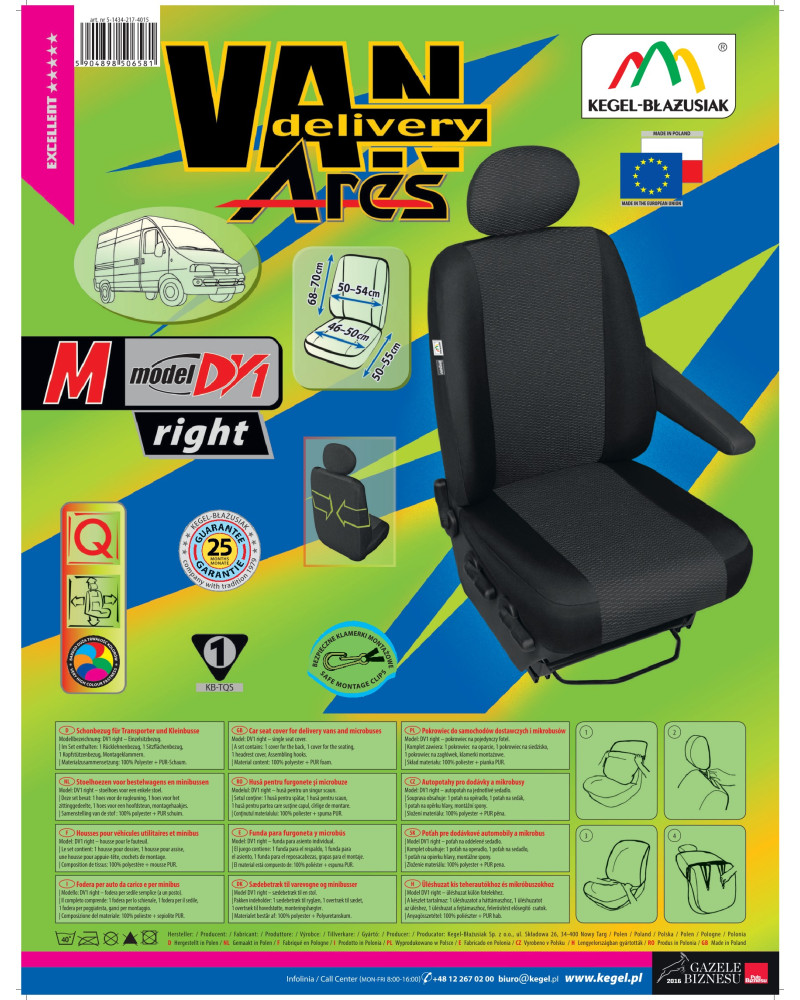 Prispôsobené poťahy ARES - pohodlné a bezpečné autopoťahy navrhnuté s ohľadom na majiteľov dodávok a mikrobusov - profesionálne vyrobené z neľahko horľavého, vysoko kvalitného žakárového materiálu. Presne z takýchto materiálov sa vyrábajú originálne obšitia sedačiek nových vozidiel pre automobilové továrne. Starostlivo ušité a dôkladne olemované. Vďaka správnej konštrukcii a rozmerom sa poťahy skvelo prispôsobia tvaru sedadiel konkrétnych modelov automobilov. Vďaka laminácii na vnútornej strane PUR penou sa neposúvajú voči sedadlu. Poťahy ARES efektívne chránia čalúnenie pred predratím, znečistením a zničením a tiež skvele vyzerajú vo vnútri vozidla. Poťahy sú celé vyrobené zo silného, odolného, pevného žakárového materiálu. Materiál má čiernu farbu - čierna s jemnou šedou textúrou skvele zapadne do interiéru každého automobilu. Poskytovaná záruka až 25 mesiacov vám dá istotu, že si kupujete výrobok najvyššej kvality.