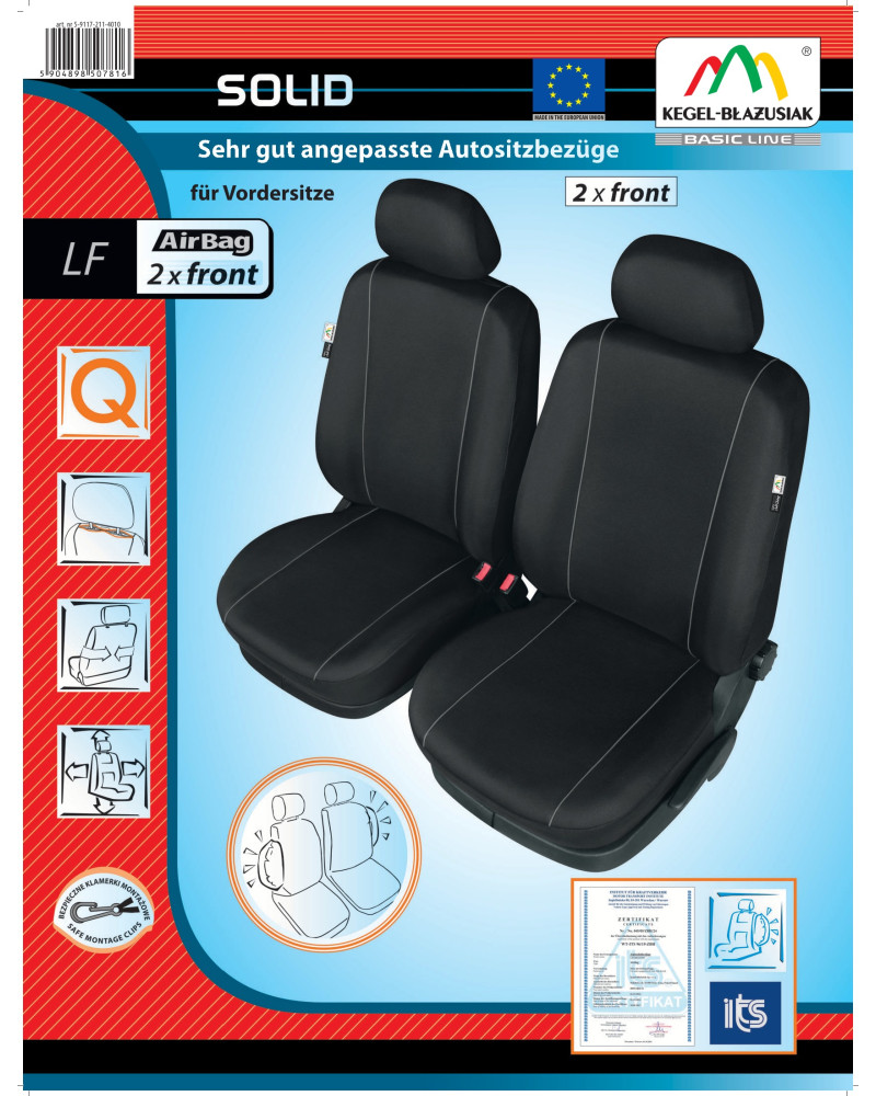 Prispôsobené poťahy SOLID z radu Basic Line – to sú lacné a zároveň veľmi silné poťahy do osobných automobilov, ktoré sa vyznačujú nesmierne atraktívnym vzhľadom. Tým, čo poťahy SOLID odlišuje od iných poťahov tohto typu, je materiál, z ktorého boli vyrobené, konkrétne žakárová látka s veľmi vysokou odolnosťou voči roztrhnutiu a predratiu. Materiál je podlaminovaný penou spolu so šifónom, vďaka tomu dobre priľne k čalúneniu. Zadná časť poťahov je úplne uzatvorená, čo umožňuje nielen chrániť čalúnenie, ale tiež operadlo sedačky. Poťahy SOLID sú tvorené pre konkrétne modely áut - boli starostlivo navrhnuté a dôkladne dokončené. Poťahy SOLID aj napriek nízkej cene v ničom nezaostávajú za drahšími poťahmi. Veľmi dobre chránia originálne čalúnenie auta pred znečistením a zničením, zároveň nadchnú vkusným vzhľadom.