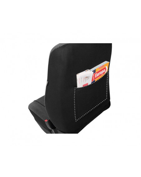Poťahy sú vybavené nevyhnutným prierezom zapínaným na suchý zips, ktorý umožňuje ich nasadenie bez nutnosti vyťahovať opierky hlavy. Pokiaľ je sedadlo vybavené lakťovými opierkami, umožní ich používanie špeciálny otvor v materiáli. Poťahy sú zozadu uzatvorené, takže chránia nielen predné čalúnenie ale tiež celú zadnú časť sedadla. Ide o vylepšenie predovšetkým pre rodičov malých detí. Vzadu na poťahu na sedadle spolujazdca je všité vrecko, ktoré môže byť nesmierne užitočné. Sada je vybavená špeciálnymi sponami a do materiálu sú všité pripevnenia, čo s pomocou priloženého obrázkového návodu na obsluhu zaisťuje veľmi ľahkú montáž. Poťahy sa vyznačujú dlhou životnosťou, odolnosťou voči oteru a ľahkou údržbou. Možno ich bez obáv prať v práčke pri teplote 40°- v súlade s pokynmi na etikete.