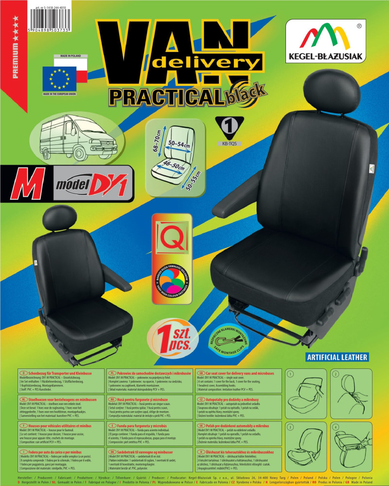 Prispôsobené poťahy PRACTICAL vznikli z nesmierne stálej ekokože novej generácie, čo v kombinácii so starostlivosťou zakončenia aj tých najmenších detailov uspokojí aj tých najnáročnejších zákazníkov. Správne nasadené poťahy nie sú prakticky na rozoznanie od originálneho koženého čalúnenia sedadiel a tohto efektu možno dosiahnuť za skutočne nízku cenu. Poťah je vyrobený zo silného a stáleho materiálu a vďaka správnej konštrukcii sa dobre prispôsobí sedadlám a priľne k nim, čím zabraňuje posúvaniu sa poťahu. Autopoťahy PRACTICAL veľmi dobre chránia originálne čalúnenie auta pred predratím a zničením a vkusný, moderný štýl vyvoláva pozitívne estetické vnemy. Produkt sa veľmi ľahko inštaluje a čistí. Poctivé prevedenie zaručuje vysokú kvalitu a dlhú dobu používania. Nepremokavý, nešpiniaci sa a nesmierne odolný materiál zaisťuje praktické používanie. Ponuka cieli na majiteľov dodávok a mikrobusov, ktorí sa chcú postarať o interiér svojich vozidiel, učiniť ich šik a dodať im eleganciu. Čierna, univerzálna farebnosť sa ideálne zladí s interiérom každého vozidla. Poťahy vyzerajú skvelo v každom aute. Sú výnimočne elegantné, preto tiež vďaka nim každý interiér pozdvihne svoju úroveň a získa gráciu.