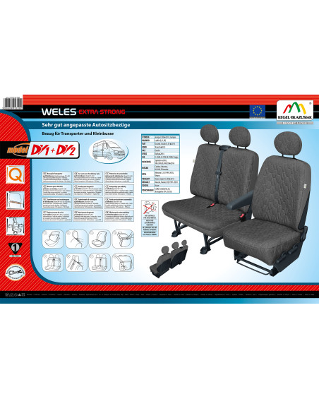 Prispôsobené poťahy WELES Extra Strong z radu Basic Line – to sú lacné a zároveň veľmi silné poťahy do osobných automobilov, ktoré sa vyznačujú nesmierne atraktívnym vzhľadom. Tým, čo poťahy WELES odlišuje od iných poťahov tohto typu, je materiál, z ktorého boli vyrobené, konkrétne žakárová látka s veľmi vysokou odolnosťou voči roztrhnutiu a predratiu. Materiál je podlaminovaný penou spolu so šifónom, vďaka tomu dobre priľne k čalúneniu. Zadná časť poťahov je úplne uzatvorená, čo umožňuje nielen chrániť čalúnenie, ale tiež operadlo sedačky. Poťahy SOLID sú tvorené pre konkrétne modely áut - boli starostlivo navrhnuté a dôkladne dokončené. Poťahy WELES aj napriek nízkej cene v ničom nezaostávajú za drahšími poťahmi. Veľmi dobre chránia originálne čalúnenie auta pred znečistením a zničením, zároveň nadchnú vkusným vzhľadom.